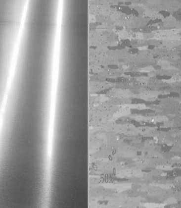 采用特殊設(shè)計(jì)的合金成分,配合專用的均熱和擠壓工藝,可以有效控制擠壓產(chǎn)品的粗晶厚度,6061、6082和7075合金棒材的粗晶可以控制在0.5mm以內(nèi),明顯優(yōu)于行業(yè)同類產(chǎn)品。